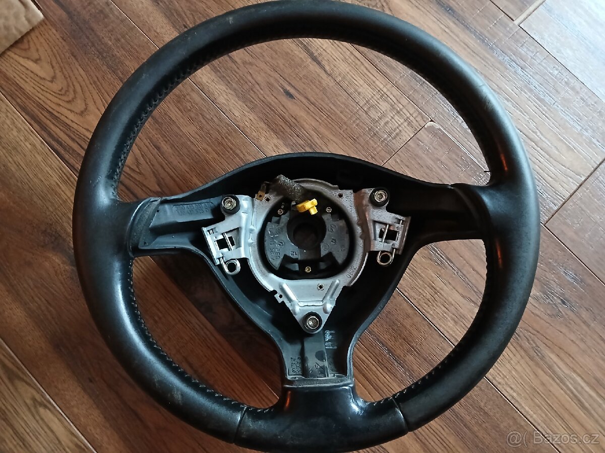 Tříramenný kožený volant VW - [11.2. 2026]Prodám pěkný zachovalý kožený volant z Vw golf 4. Pasuje i do jiných modelů .