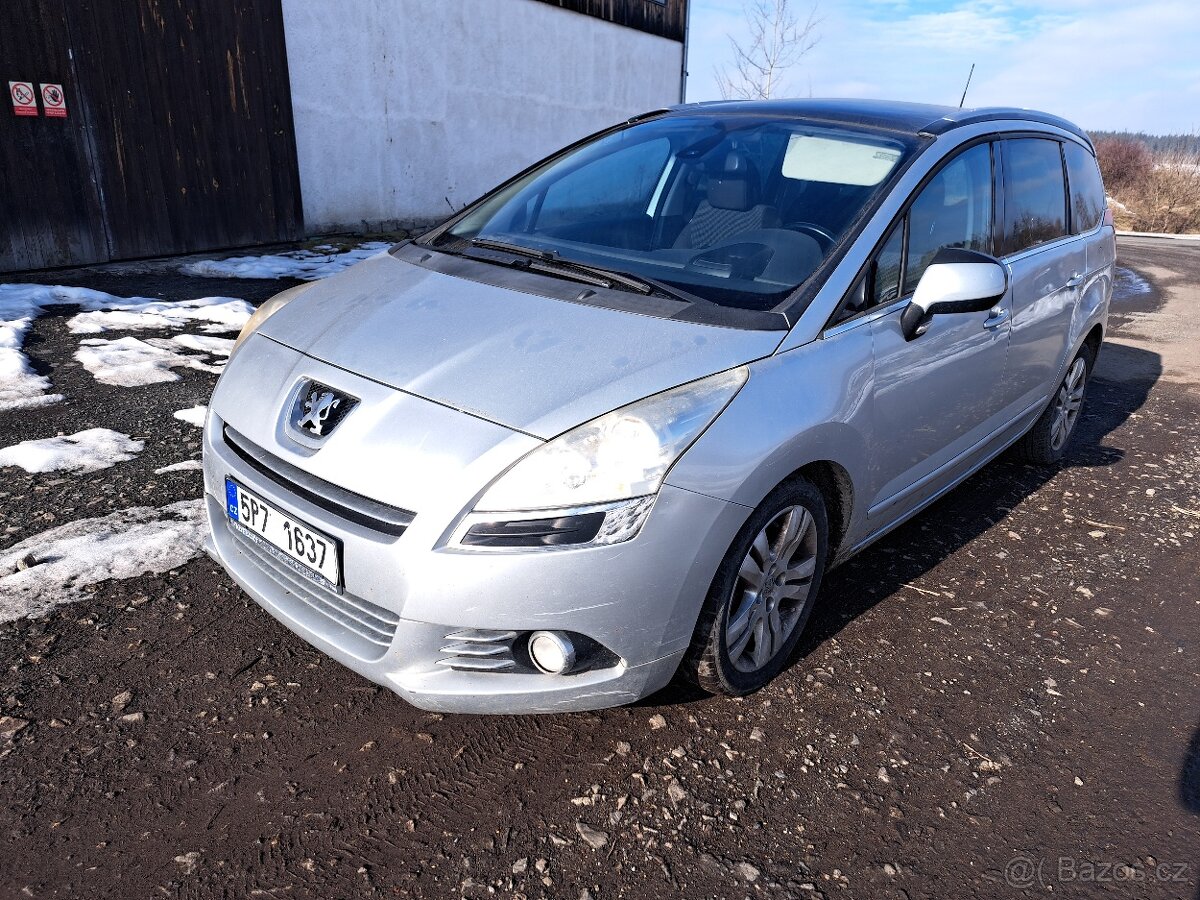 Prodám Peugeot 5008 2,0 HDi, 110 kW, najeto 314000 km, koupeno jako předváděcí od Auto Kopecký, od té doby jezdilo jen u nás, má kosmetické vady, zadní lemy koroze, teď po delší odstávce nefungují přední stěrače, ostřikovač oken normálně. Na letních pneu, druhá sada kol zimní.
