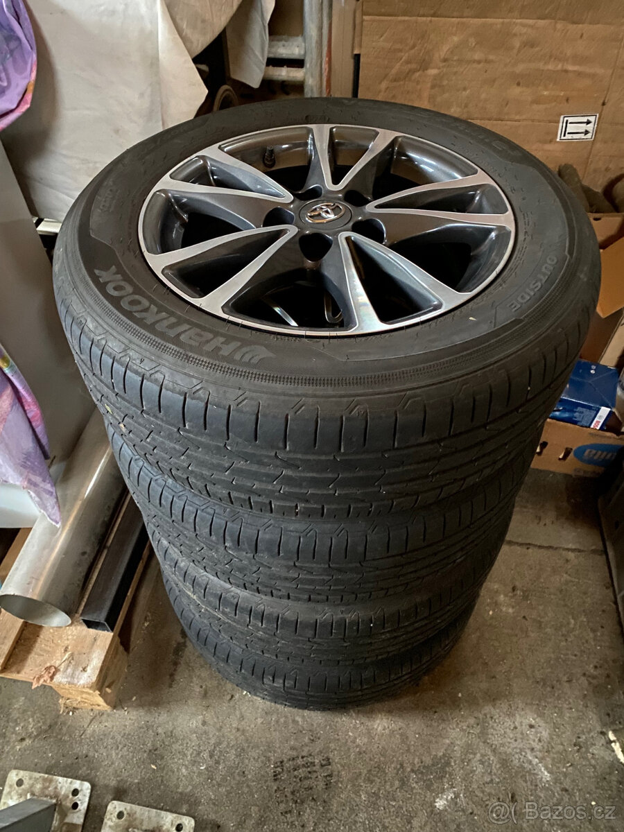 Originální ALU Toyota R16, ET39, 16 x 6 1/2J, velmi pěkný stav, bez oděrek, málo jeté letní pneu Hankook 205/60, vzorek cca 5mm. TPMS ventilky už nefunkční.