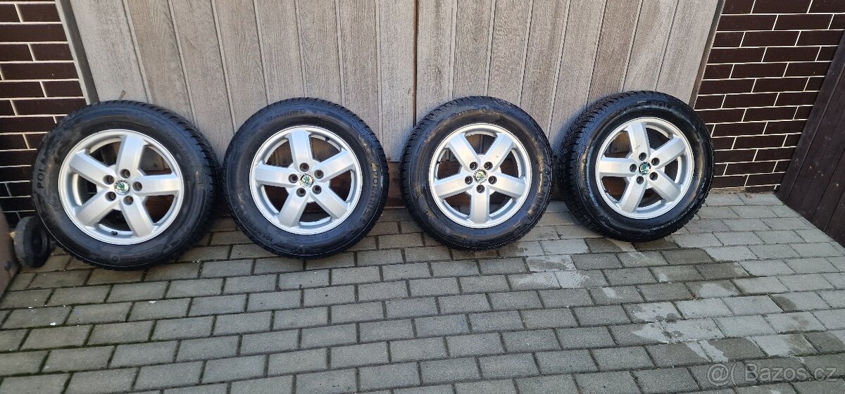 Prodám originál kola Škoda o rozměrech: 6Jx15,ET38,rozteč 5x100. Pneu zimní Barum Polaris5 195/65/15. SPĚCHÁ...