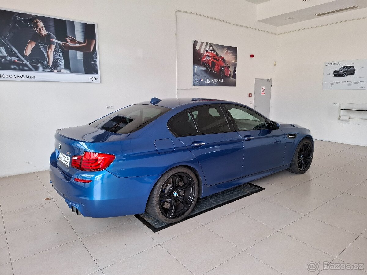 Prodám BMW M5 f10, rok 2012, najeto 170tis., koupeno jako nové v ČR, třetí majitel, jasná historie, servis jen BMW zkrácený interval pro výměnu oleje, ježděny dlouhé trasy (do 140tis Praha-Berlín-Hamburg), nebouráno, garážováno a jen ručně myté (za mého vlastnictví nezná ani déšť), kosmetické vady na předním a zadním nárazníku, odvětrávané sedačky, softclose,..