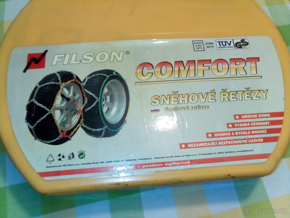 Prodám ocelové sněhové řetězy zn. Filson Comfort KN040 na kola o velikosti 12-14“ v plastovém pouzdru ( viz foto) jednou použité. Důvod prodeje – mám už větší kola. Pouze osobní odběr. Cena 300,-Kč