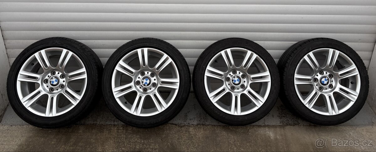 Originální alu kola Bmw, Styling 194, o rozměru 8jx17 is (et) 34, 8,1/2jx17 is (et) 37. Kola v originálním laku, nesou známky používání, nové pokličky a loga m///. Obuto na letních pneu Dunlop 225/45 17, Bridgestone 255/40 17Vhodné na 36, 46, 90, 91, 92, 93 a jiné střed 72,6mm. Cena za sadu možnost dopravy po domluvě.