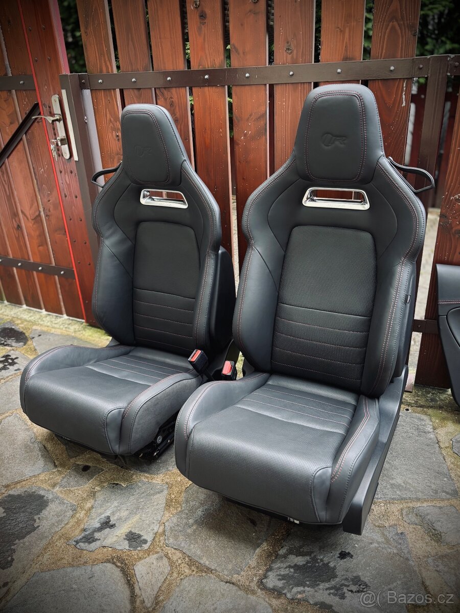 - Příplatková celokožená černá perforovaná skořepinová sedadla s červeným prošíváním v maximální specifikaci plně elektrického ovládání, s výhřevem a odvětráváním. Součástí jsou jednotky obou sedaček.