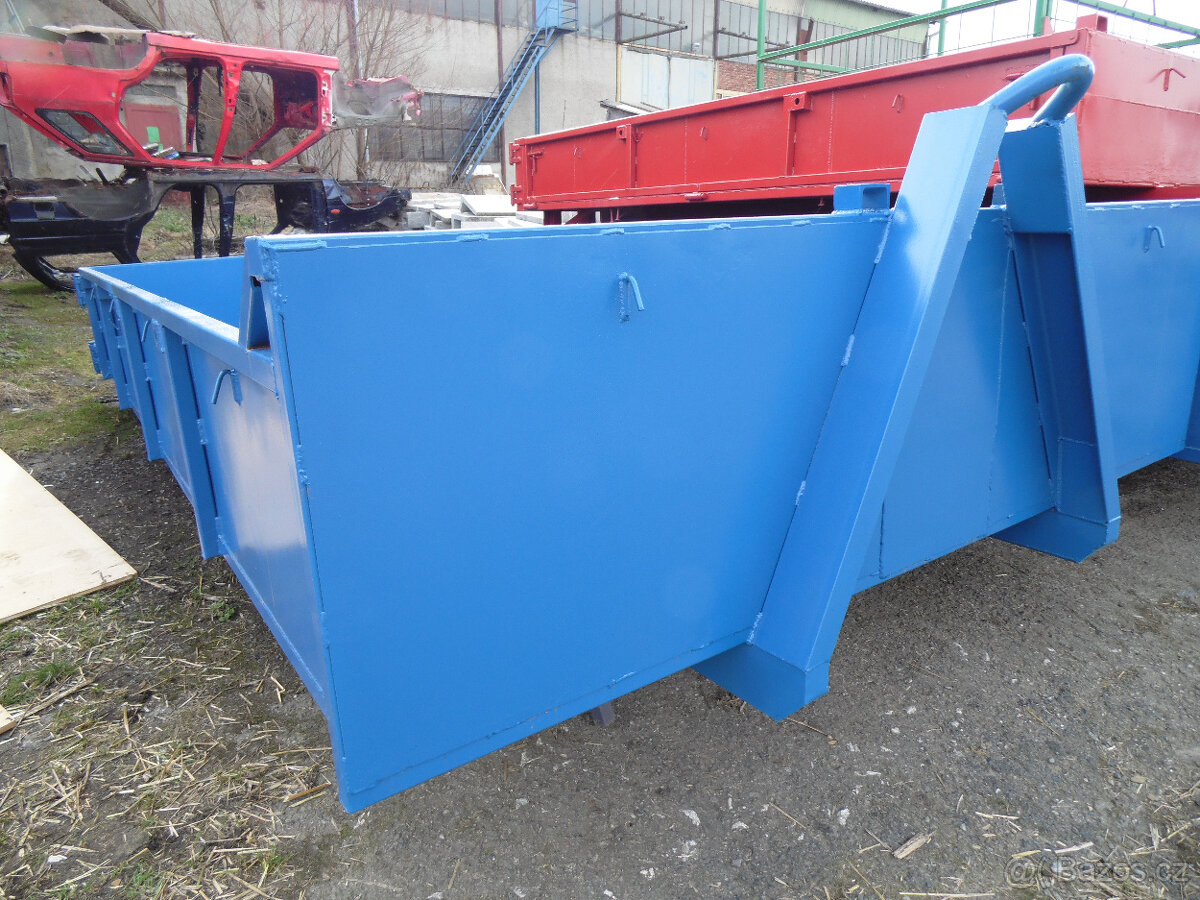 Prodám suťový kontejner 4000x2200x500/700, hák 1000/40, podlaha plech 4mm, boky plech 2,5mm, silná rámová konstrukce z uzavřených profilů, Lyže U120.