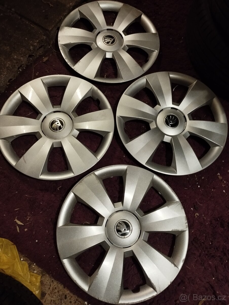 Prodám poklice R 15original 4 ks.skoda originální drobné škrábance z provozu.cena 800.kc vse