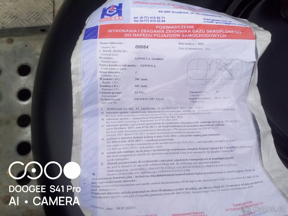 Prodám nádrž LPG vnitřní špatná koupě vše viz foto nádrž je úplně nova nikdy nenamontovana veškeré doklady kni na přihlášení