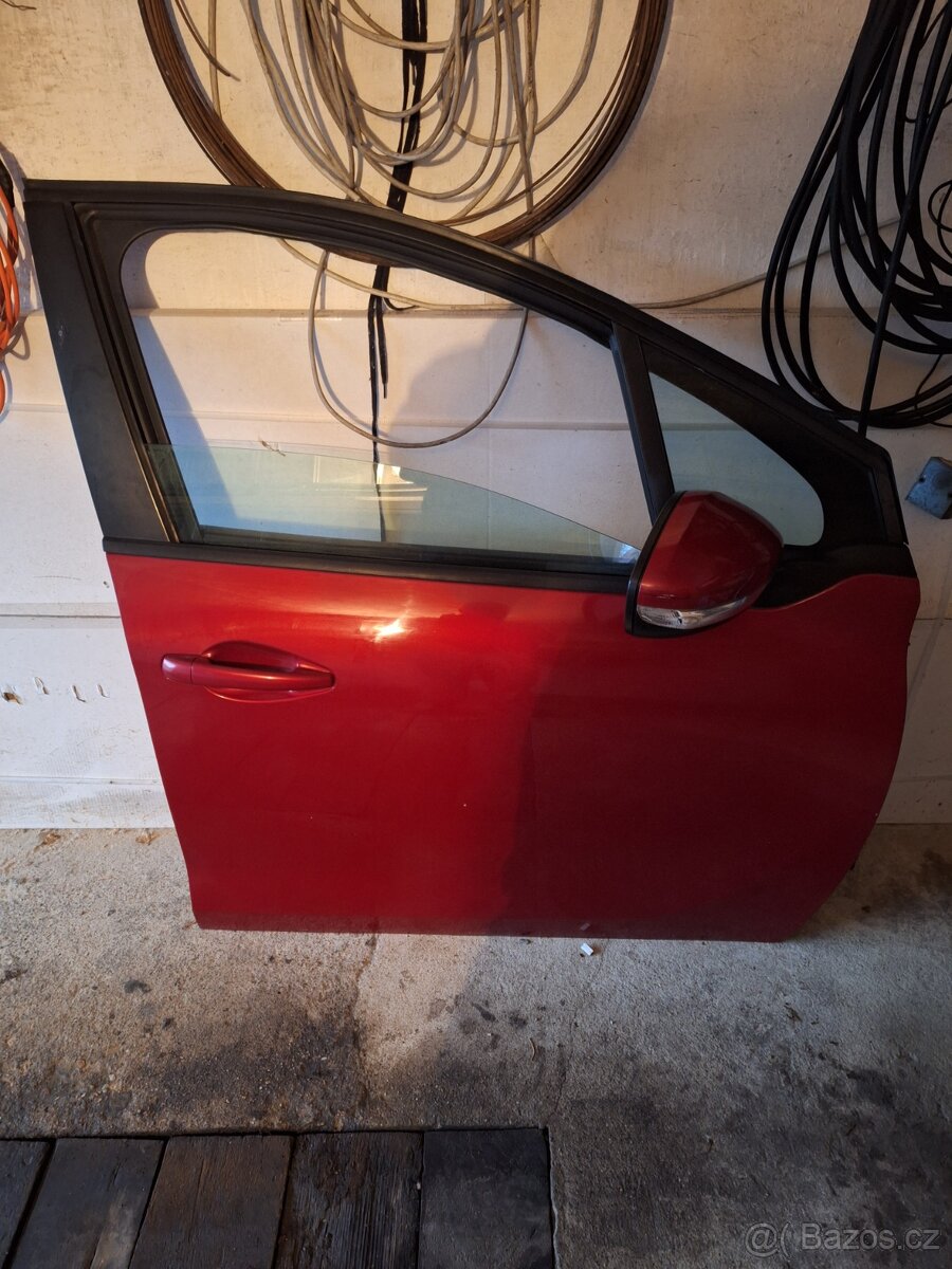 Prodám pravé přední dveře na Peugeot 208 nepoškozené plně osazené barva červená metalíza kód EPYD.