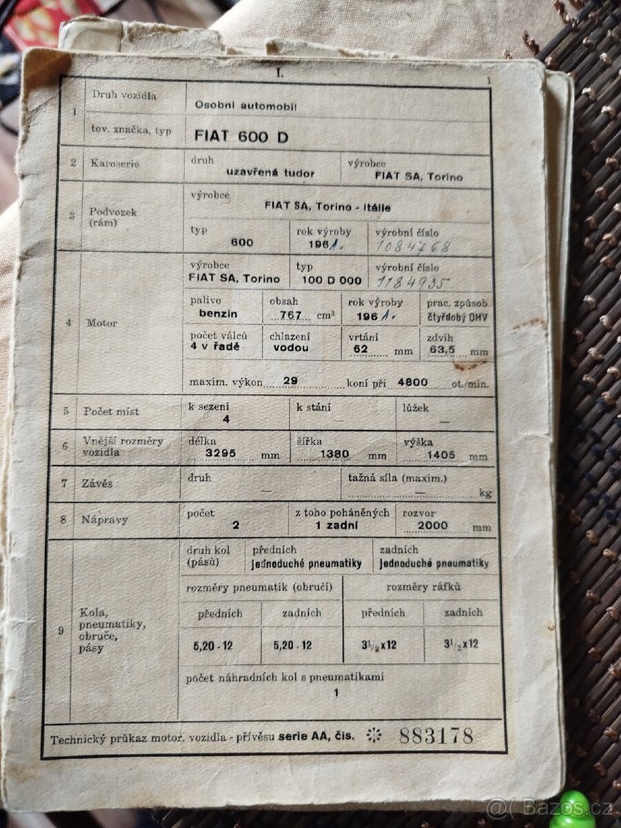 Noty nestřižené na fioška 600D 1961