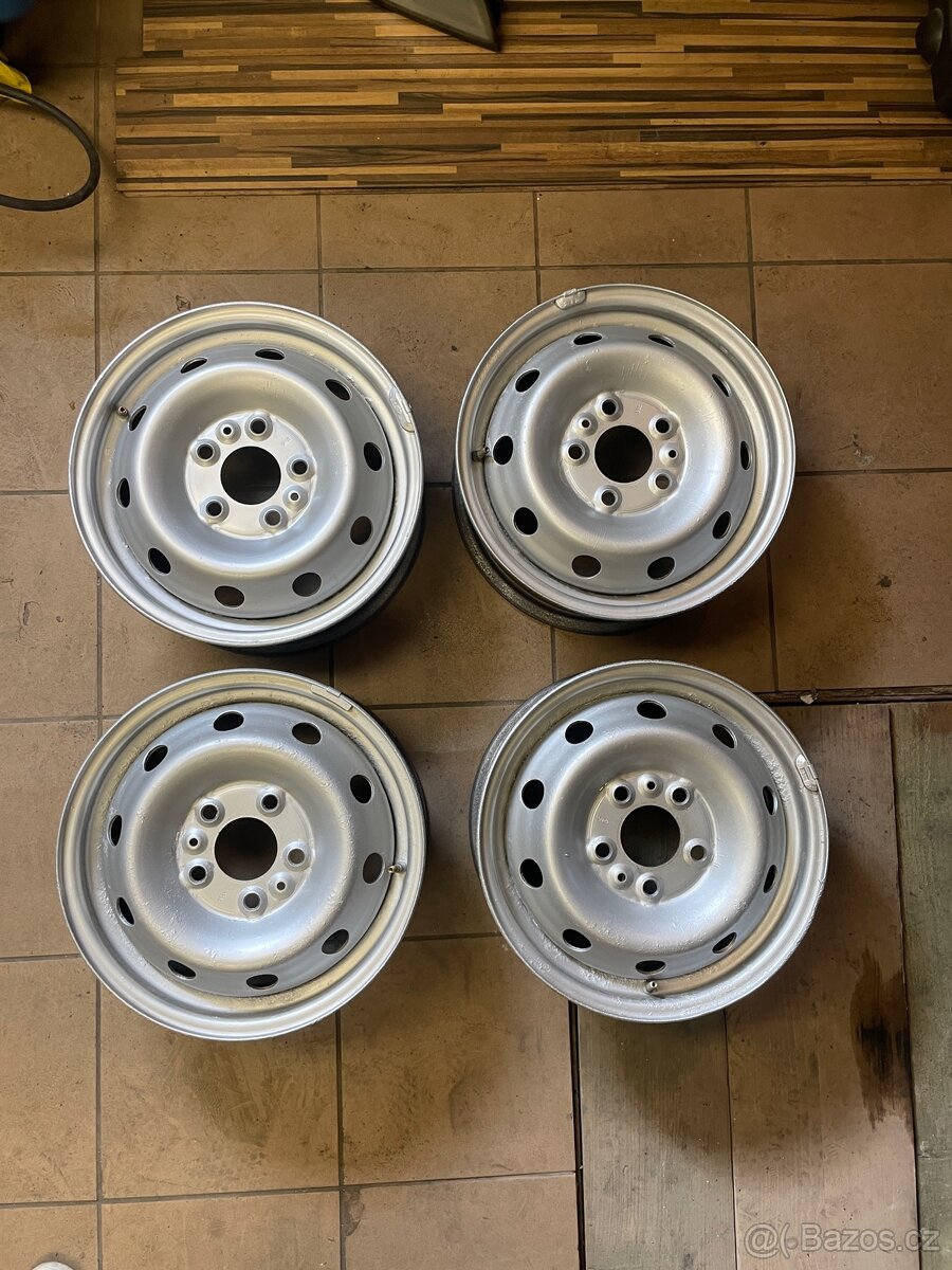 Prodám tyto zátěžové plechové disky pro Fiat Ducato nebo Peugeot Boxer, Citroen Jumper, velikost disku je R15, s roztečí 5x118, šíře disku 6J, průměr středové díry 71,1 mm, ET 68. Včetně plastových středových pokliček.