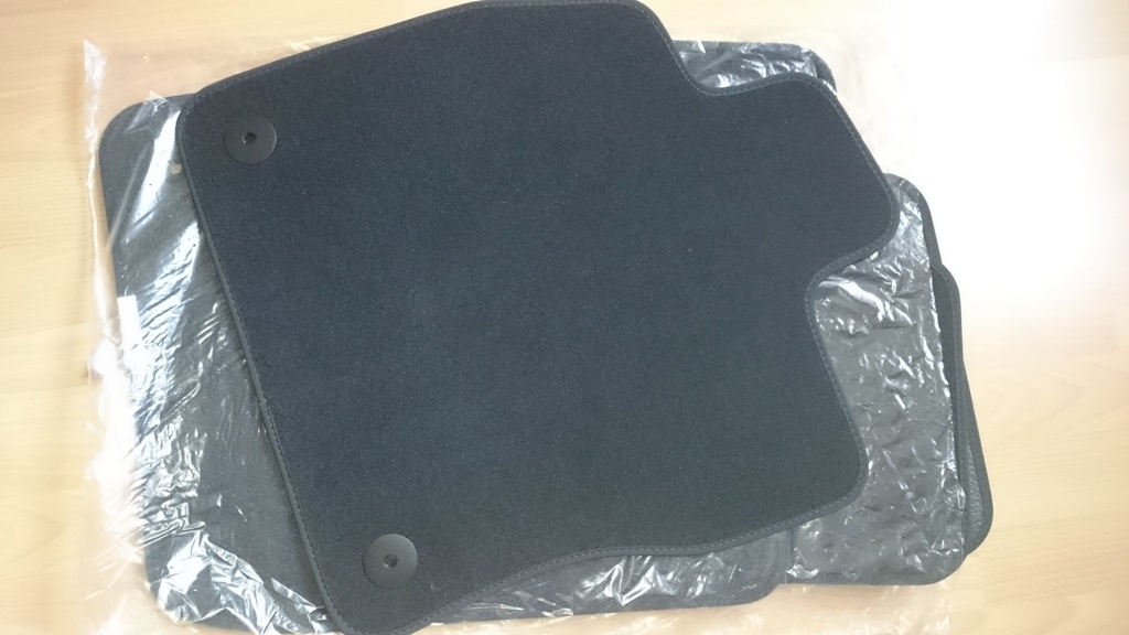 Koberec řidiče a spolujezdce s fixačními elementy k nacvaknutí na podlahové čepy a zadní koberce volně vložené.
