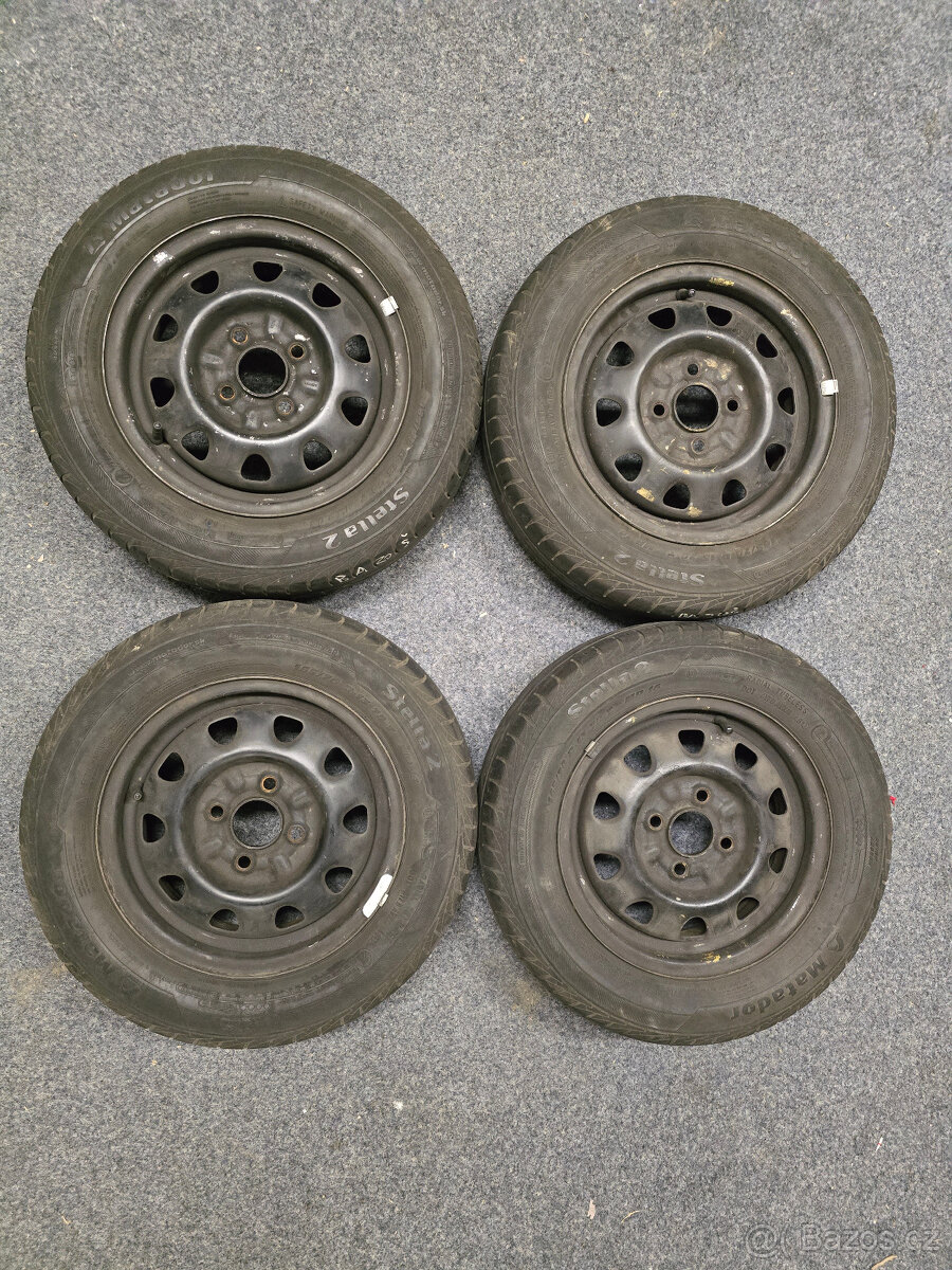 Plechové disky Škoda Felicia 4x100 4,5x13 165/70r13 celoročn - [15.2. 2026]Prodám 4 Kusy originálních plechových disků na Škoda Felicia - rozteč šroubů 4x100,šířka/výška disku 4.5x13 ET 38 - průměr středové díry 57mm,obutých a NOVĚ VYVÁŽENÝCH na univerzálních pneumatikách 165/70r13 79T Falken - Euroall Season AS200 +,hloubk ...