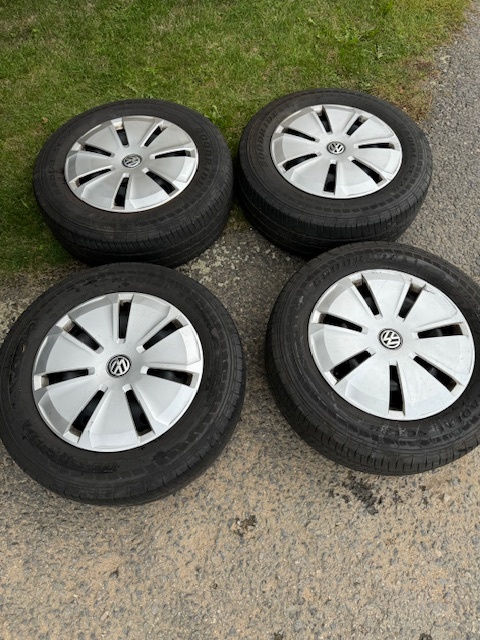 VW T5,T6 (6.1) - Sada pěkných letních kol 205/65R16C zánovní - [14.2. 2026]Prodám komplet sadu 4ks plechových disků originál VW: 7H0 601 027C- 6.5J x R16, ET51, rozteč 5x120 na VW Transporter T5, T5 facelifit, T6, T6.1 + pěkné skoro zánovní „céčkové“ letní pneu Barum Vanis 2 rozměru 205/65/16C 107/105T, Cca 7 – 7.5 mm - viz ...