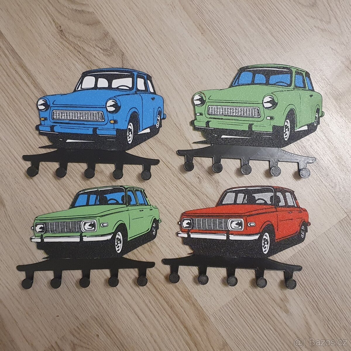 Nabízím vyobrazené věšáky na klíče s motivem aut.
