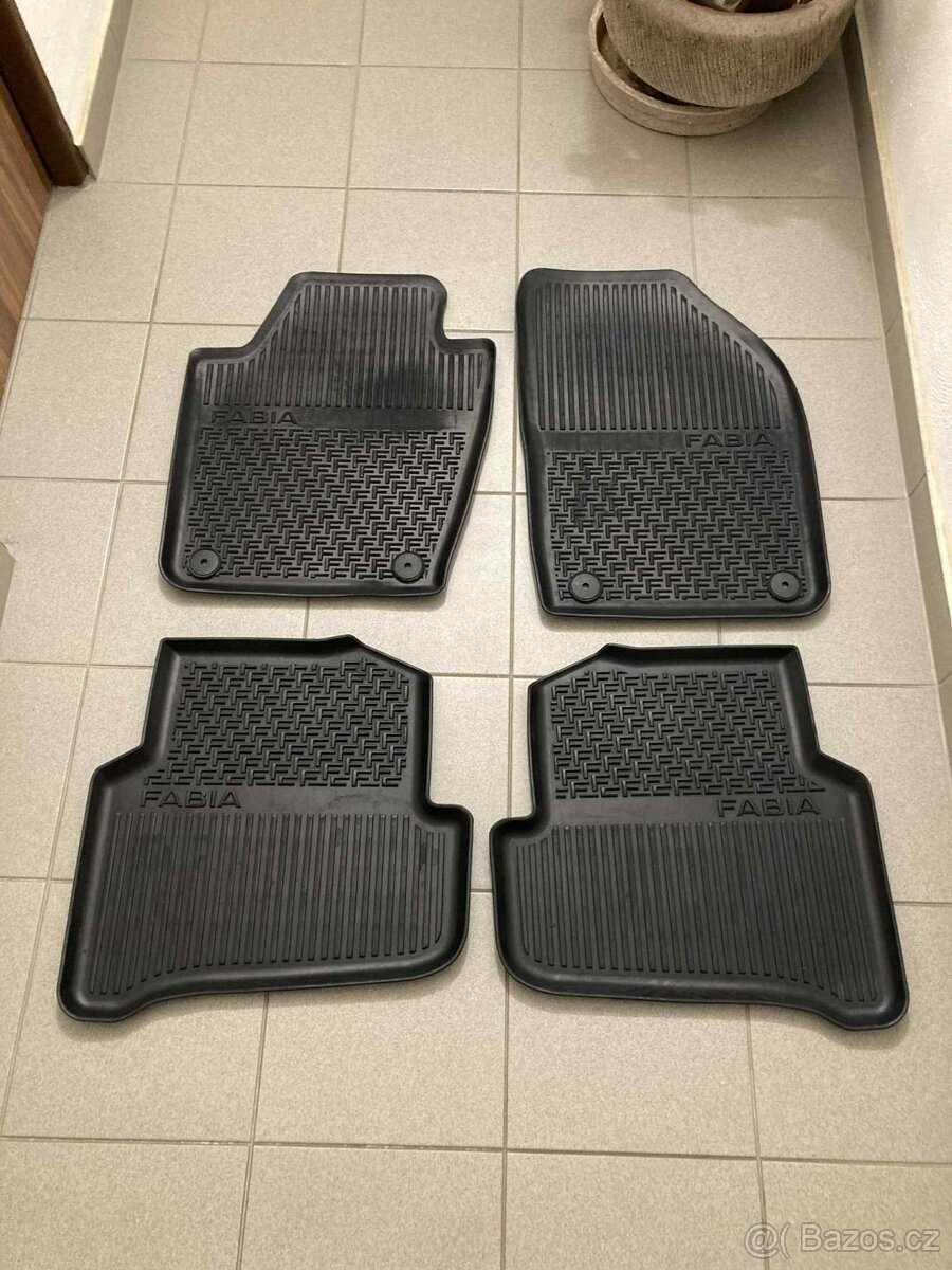 Prodám sadu 4ks gumových koberců do interieru + "vana" do kufru Škoda Fabia 3.gen.