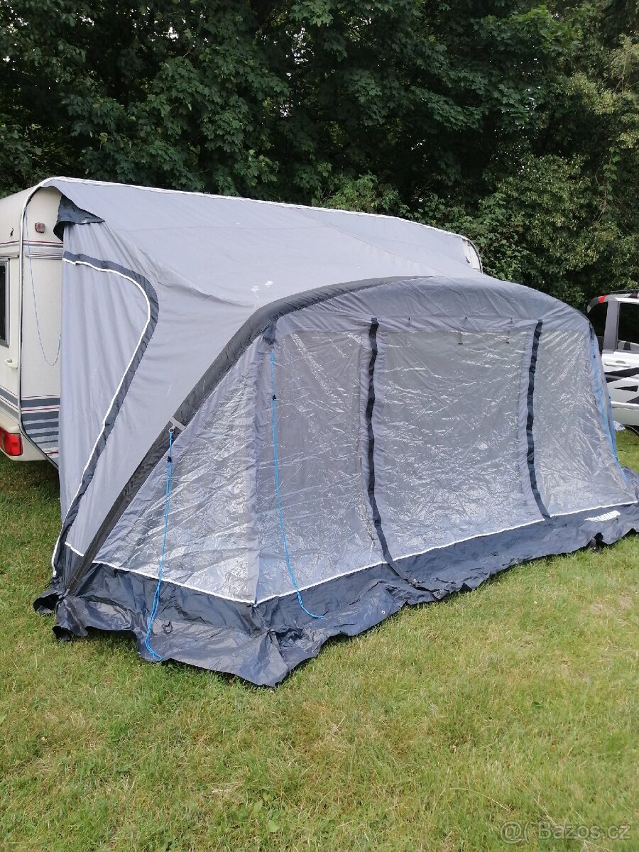 Předstan Kampa 390 - [8.2. 2026]Prodám nafukovací předstan Kampa Motor Rally Air 390 včetně příslušenství:nebesa,koberec,záclony,pumpa.Stan lze použít buďto samostatně nebo navléknout do drážky markýze,je samostatně stojící.
