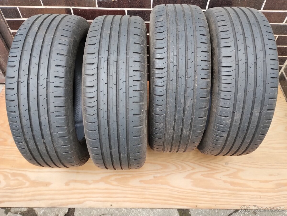 Prodám letní pneu Continental 195/55R16H ContiEcoContact5 DOT2217. Sada čtyři kusy. Vzorek 2x6-7mm,2x5-6mm. Jezdili na OPEL ADAM. Jeden majitel. Cena 349Kč/ks