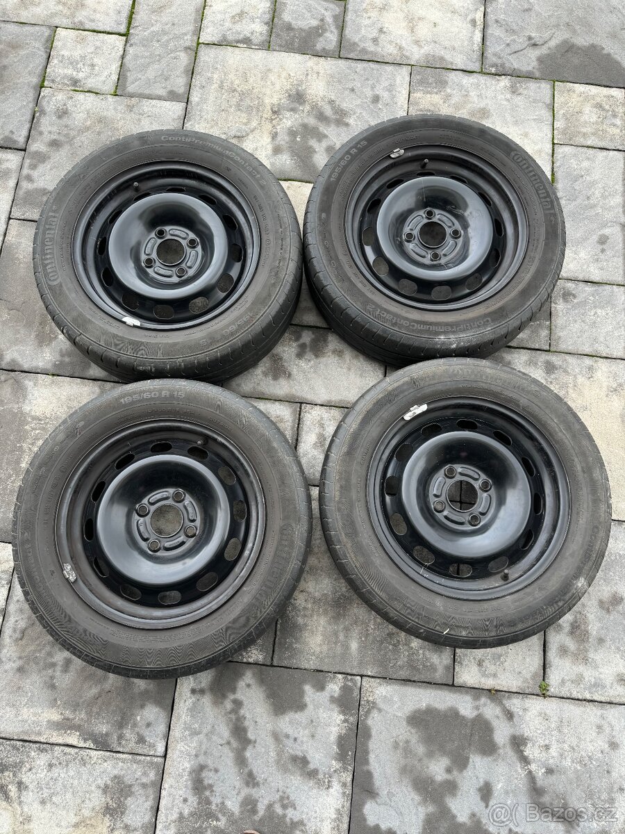 Prodám zánovní asi plechových disku v rozteci 4x108 6,5x15 Et37,5 z vozu Ford tourneo courier, disky pekne černé zdravé bez koroze ! Nazute letní pneu - špatné. Cena 2500,- za sadu , více info po tel 724725304