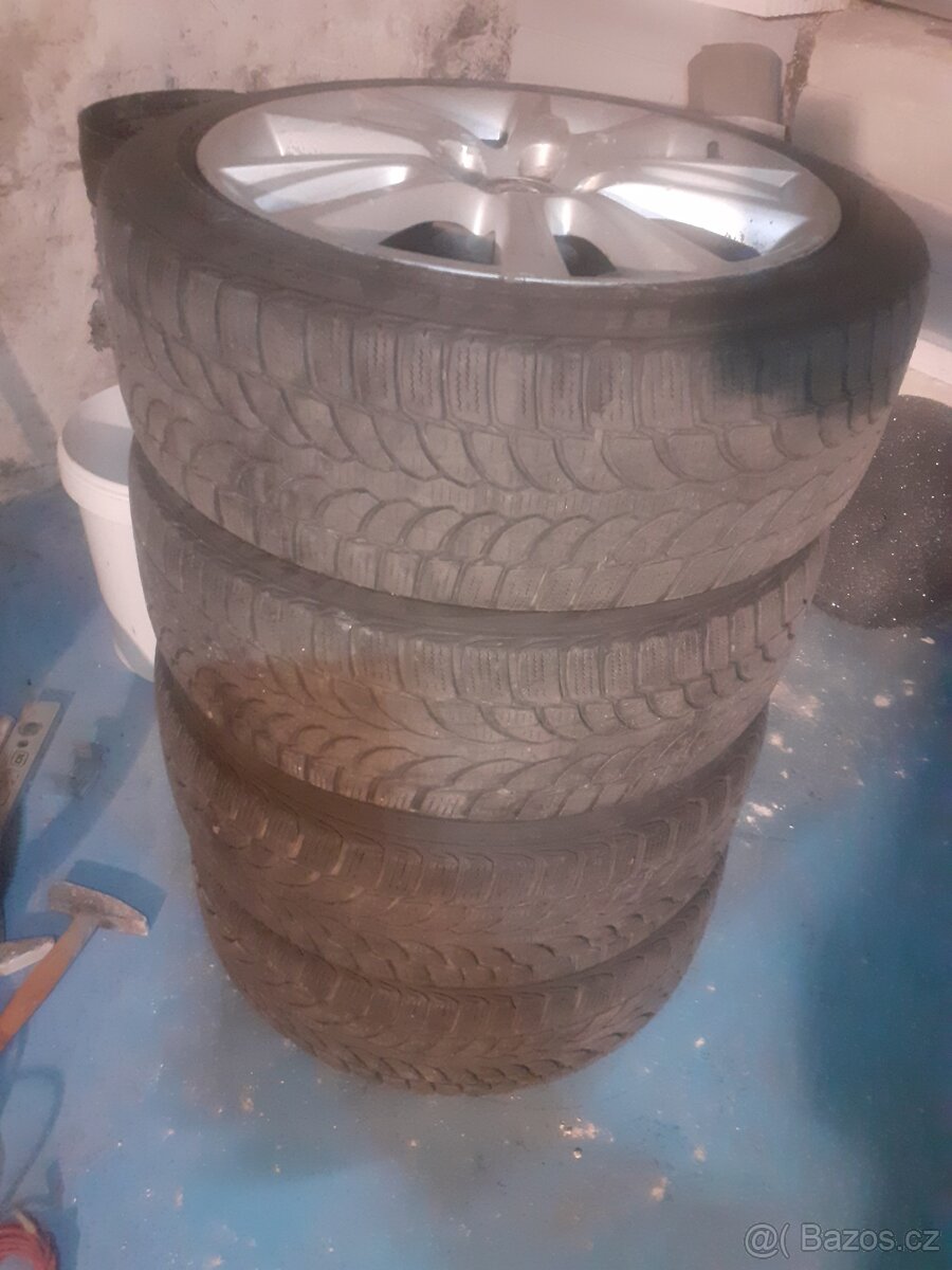 Prodám alu 18,pneu Bridgestone Blizzak 215/45/18,cca 5mm,Alu jsou rovné,ale podřené.pouze sms!!!Opava-Ostrava