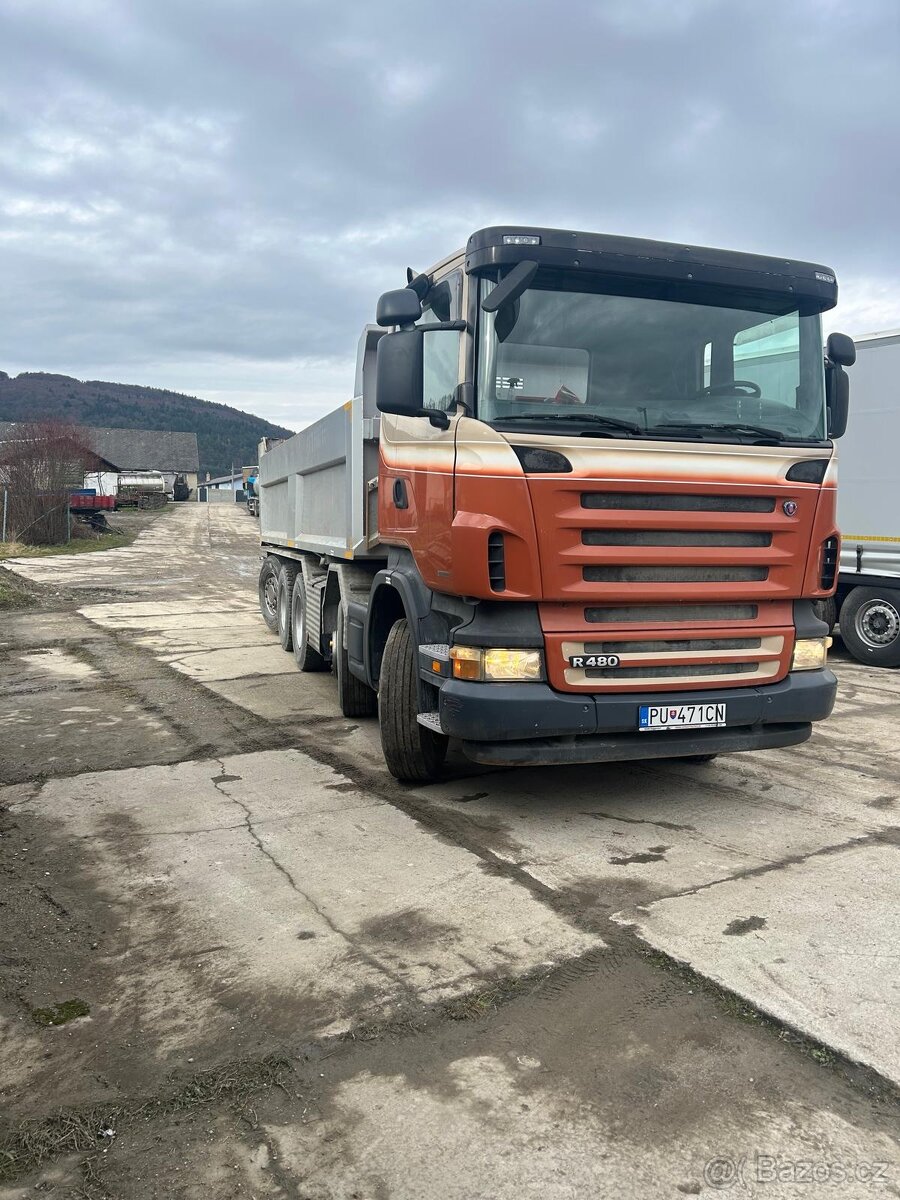 Predám dvojstranný sklápač Scania R480 10x4, rok 2009, manuál bez AdBlue, retardér, najazdených 469 273km, pruženie pneumatické, celková hmotnosť 40t, povolená nosnosť 23,5t.