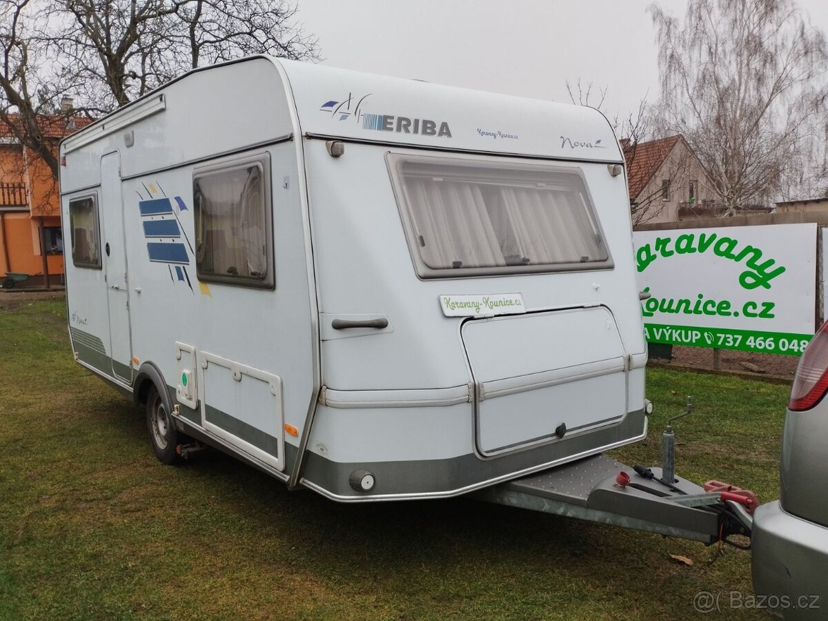 Karavan Hymer Eriba Nova 470A, velká koupelna,prostorný - [20.1. 2026]Prodám karavan Hymer Eriba Nova 470A, r.v. 2004, 3 měsíce nové pneu, celková váha 1500 kg, prostorný,suchý, pěkný, šířka 220 cm,délka 620 cm, výhoda velká samostatná koupelna se sprchovým koutem, 2 samostatná lůžka po rozložení vznikne velké lůžko cc ...