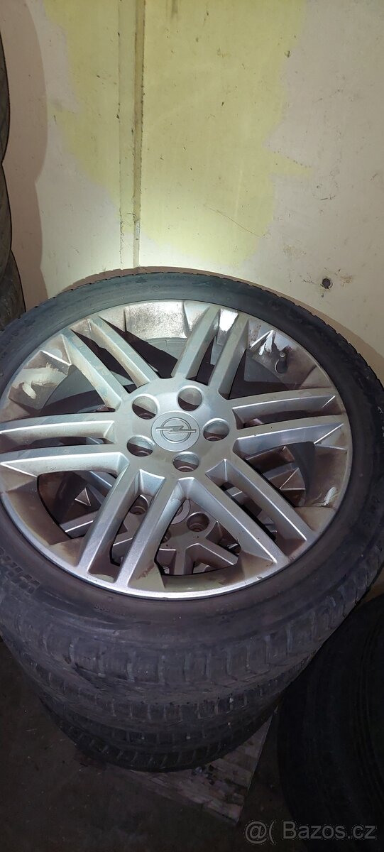 5x100-Audi A3, VW Golf 4, VW Bora, Seat Leon, Škoda Octavia 1. Leštěné středy, letní pneu 215/45, přední pneu 4,5 mm-5 mm (viz foto) a zadní mají odskákané kraje. Menší odřeniny na kolech na hranách, jak je na fotu. 1 kolo ...