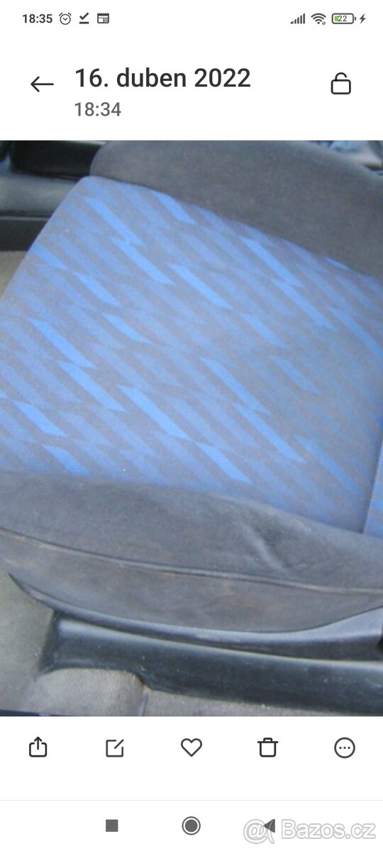 Prodám pouze čtyři kusy tapeců a kompletní zadní opěradla tohohle vzoru viz ilustrační foto. Kdyby měl někdo zničené vrchy od sluníčka. V případě zájmu nafotím. Mám i jiné díly z auta. Kompletní vnitřní plasty v černé barvě. Nejlépe na dotaz. Případně možná i směna za jiné díly z vaší strany.