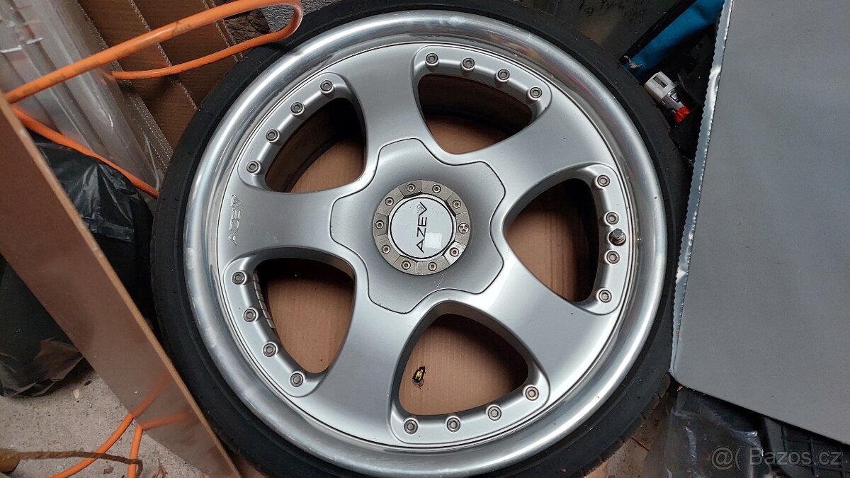 Prodám dvoudílnou sadu alu kol AZEV 8.5x18 ET35 kola mají rozteč 5x98 ale mám k tomu plovoucí šrouby na 5x100