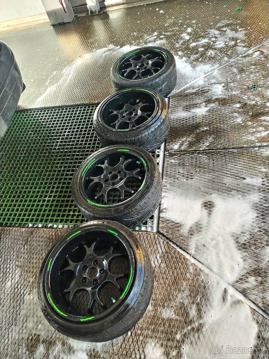 Dobrý den, prodám alu kola 5x100 R16 dvourozměr přední 7.5j ET35 zadní 9j ET30 značky borbet (kdyby byl zájem myslím si že bych někde vyhrabal tipový list) s pneu toyo proxes 215/40 bohužel jedno kolo na opravu viz. foto, proto taková cena v případě zájmu nebo jakéhokoliv dotazu pište email nebo SMS odpovím obratem zpátky. Po domluvě možno zaslat.