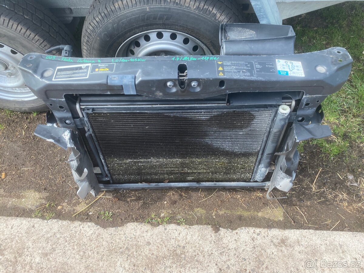 Kompletní chladičová stěna pro vůz Škoda Octavia II, k dispozici komplet na různé motorizace. Možno prodat jako komplet nebo i jednotlivě. Vypsané díly jsou pro motory 2.0 a 1.8.
