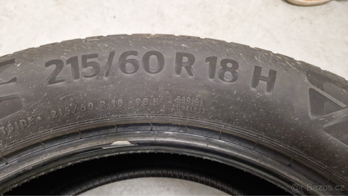 Prodam Letní pneu Continental 215/60 r18 Dot 17/25 vyzute z nového vozu Cena za 4ks