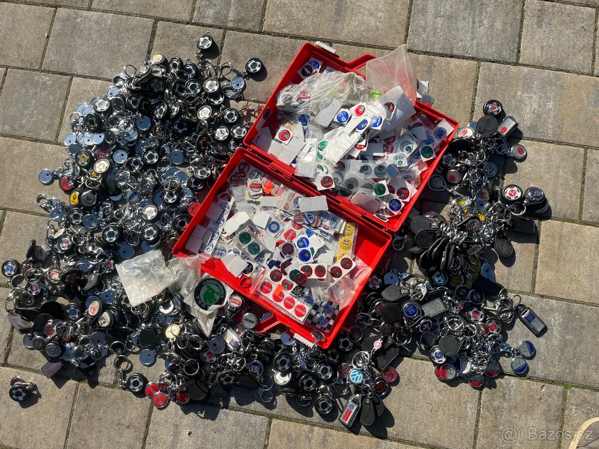 Prodám prázdné klíčenky, nalepené klíčenky a samolepky na klíčenky, různé značky, Škoda, Trabant, Mazda, Peugeot, Nissan, Opel, Renault, BMW, Mitsubishi, Seat, Toyota, Hyundai, Mercedes Benz. Stovky kusů. Cena za vše 5000,-
