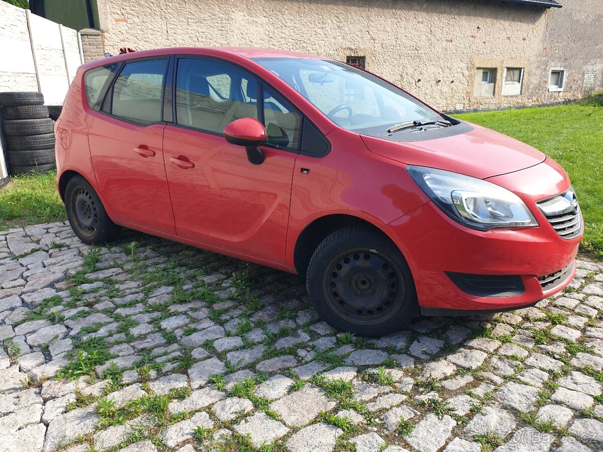 Opel Meriva B 1.4 Turbo po liftu, červená barva Z47,nárazník,maska,kapota, blatník,dveře,okna,chladiče,výztuha,zrcátka,interiér,sedačky,chladiče,palubka,airbagy,pásy,originální rádio,integrovaný výsuvný nosič jízdních kol,zadní plato,kola,nápravnice, řízení,5.vrata,a další...
