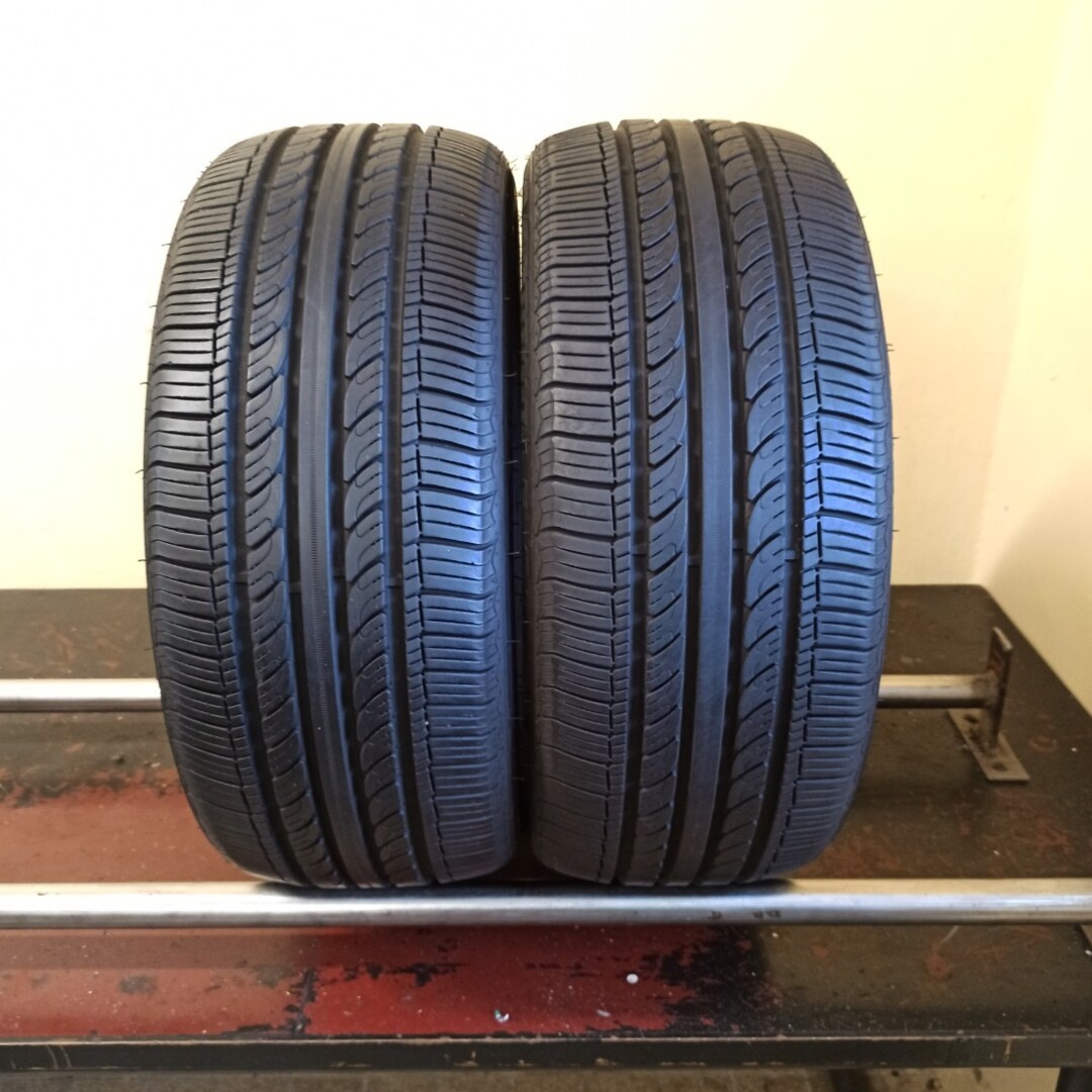 Rovnoměrně ojeté, neoskákané, poničená ochrana ráfku - neuchází. Uvedená cena je za PÁR.