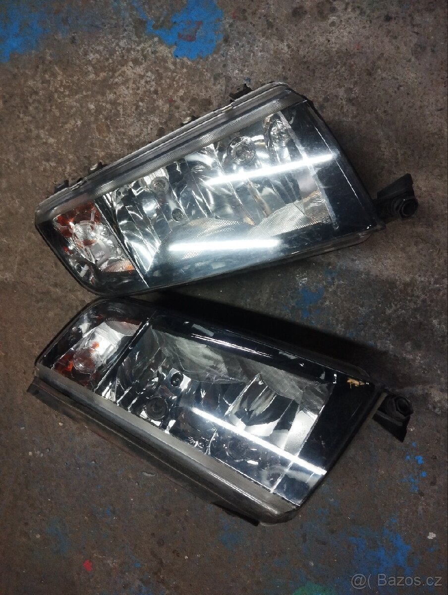Škoda Fabie 1 přední světlo pravé s levé. Nejsou zažloutlá, držáky jsou v pořádku viz foto, cena 600kč uvedena za jeden kus, možné prodat jednotlivě