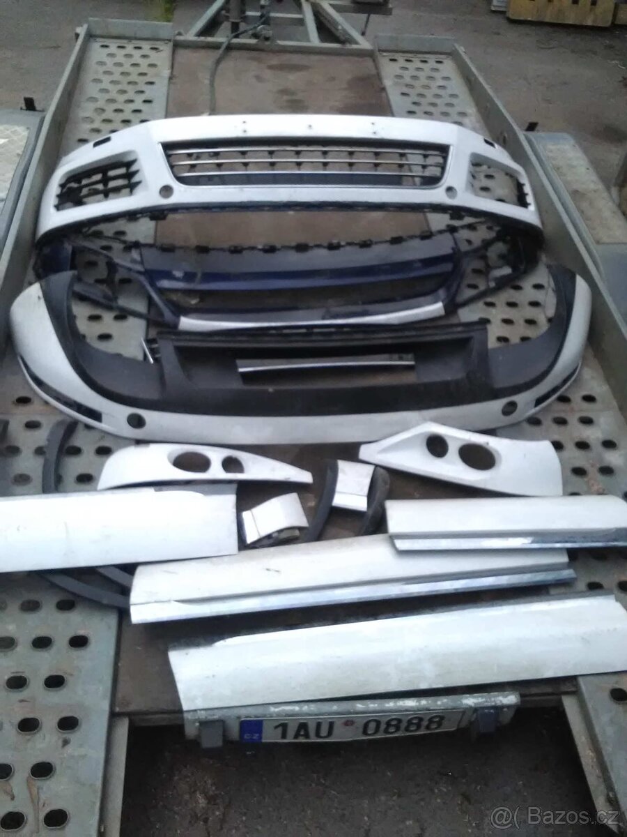 Prodám originální přední nárazník na Volkswagen Touareg 7P, původní barva modrá metalíza, díly jsou polepené bílou folií, prodám jako celek vše co je na fotce