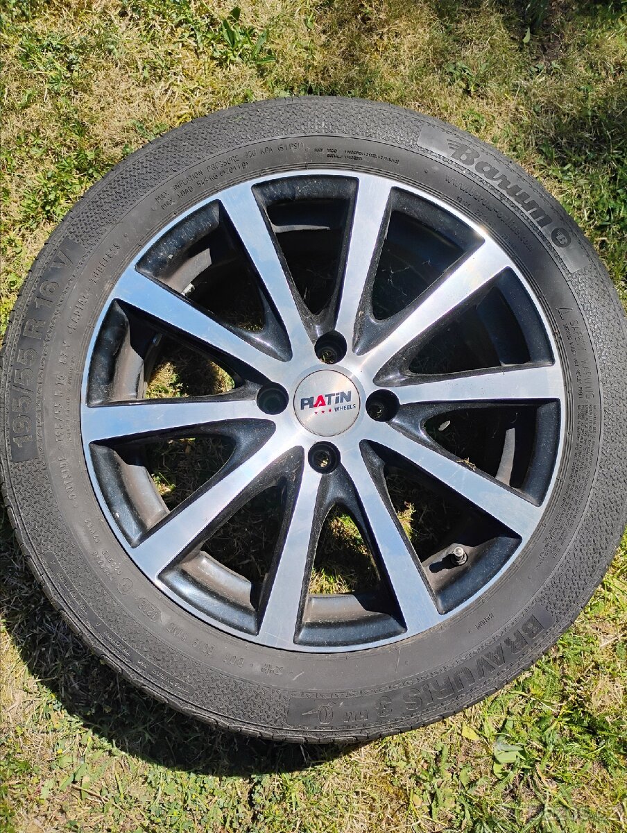 Prodám sadu 4ks kol z Nissan Micra. 6,5Jx16H2, Pneu Barum 195/55 R16 DOT 1216, vzorek na dojetí.