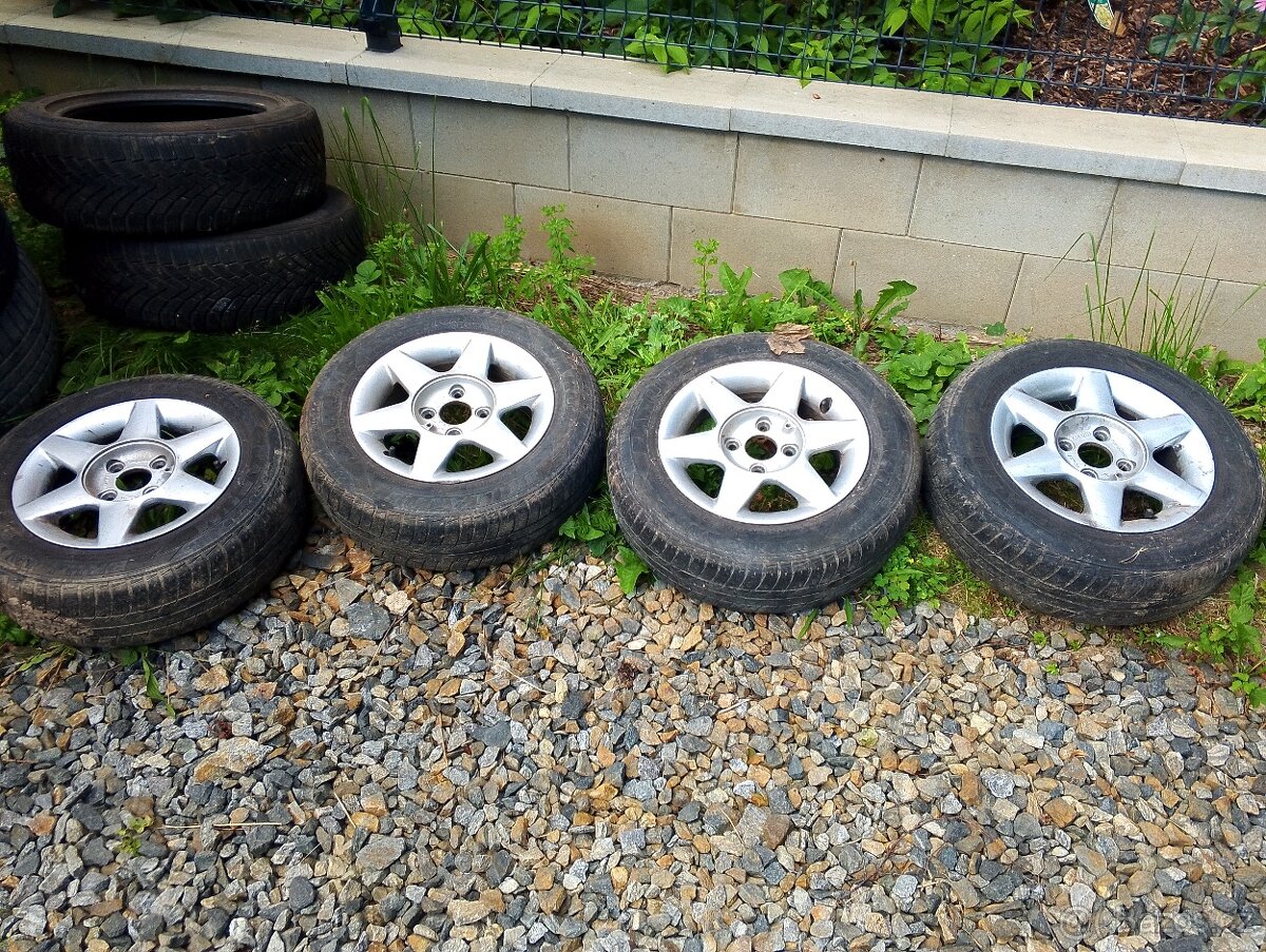 Prodám ALU kola na feldu 13" bez středových pokliček.Pneu na výměnu