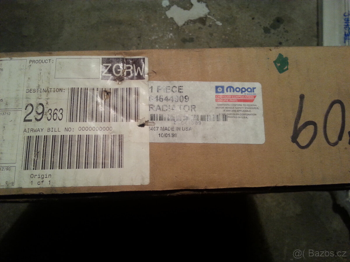 Nový nerozbalený chladič Mopar pro Chrysler Voyager, 1st gen, čárový kód 635621, made in USA, kód 04644908, rv 98.