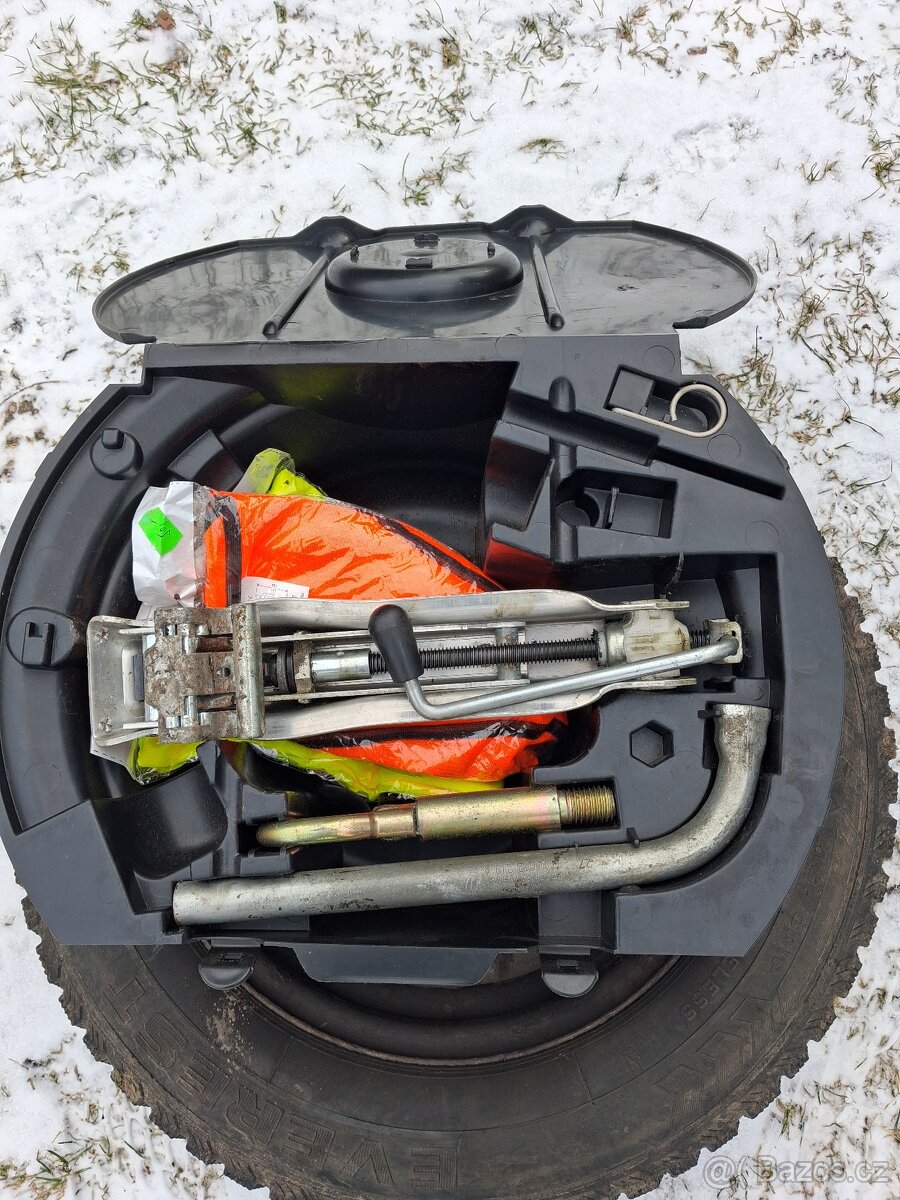 Prodám rezervní kolo 165/70 R14 s vybaveným organizérem z Fabie 1. Hever, klíč na kola, závěsné oko...