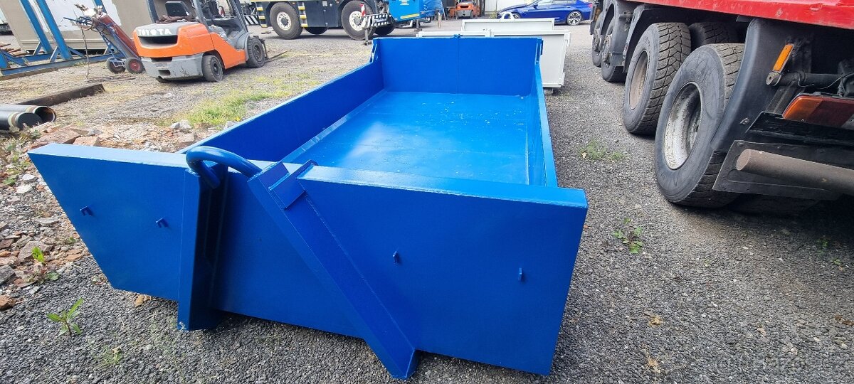Prodám nový suťový kontejner hákový pro nákladní vozy AVIA, vnitřní rozměr:3800x2000x500mm, přední a zadní čelo vyvýšené - 750mm, podlaha síla plechu 3mm, bočnice síla plechu 2mm, profil ližin I 120, nosnost 6000kg, dvoukřídlá vrata vzadu, pevné bočnice, oka na kurtování a háčky na síť po obvodu kontejneru. Cena 37.200,- je bez DPH.