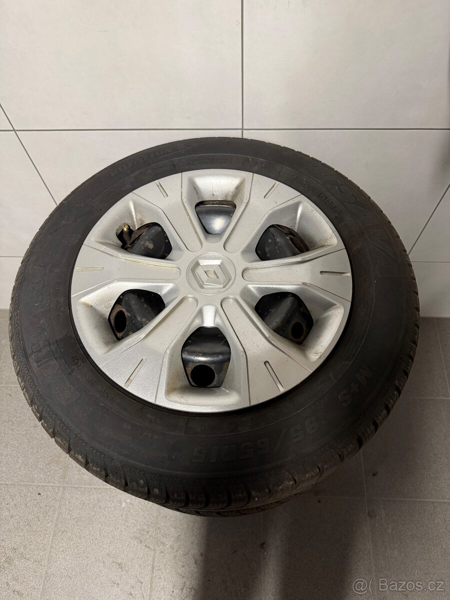 Prodám 4 ks zimní pneu SAVA Eskimo rozměr 195/65/R15 ( stav vzorku 80 %, najeto pouze 2000 KM) + ocelové disky na Renault Mégane r.v. 2016 + 4 ks originální poklice Renault.