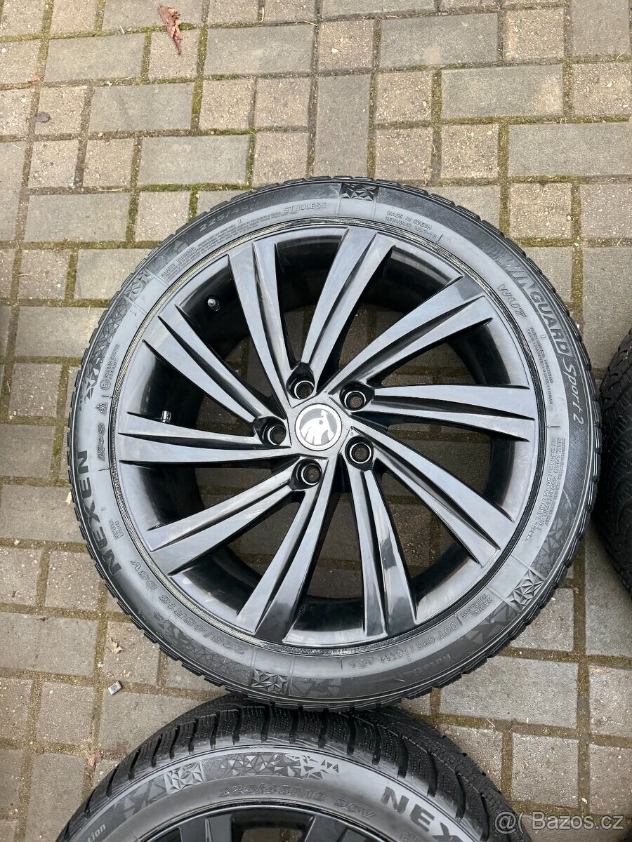 Na discích jsou obuté zimní pneumatiky Nexen Winguard sport2 a Falken o velikosti 225/45/18 a se vzorkem 2x 7mm a 2x 5 mm.