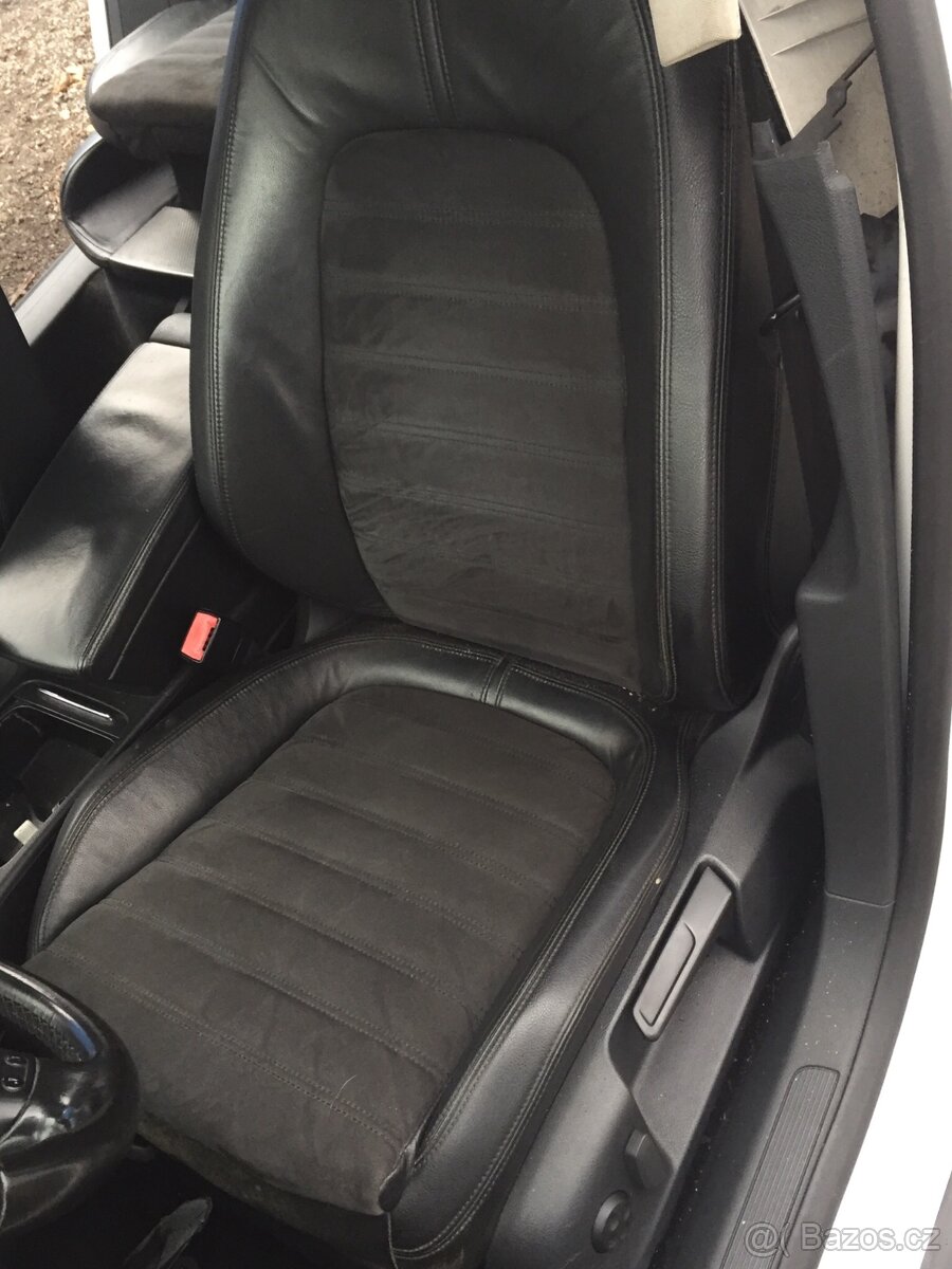 Černá kůže s alkantarou, 4x airbag, přední vyhřívané, zadní pravá s integrovanou dětskou autosedačkou. Cena za komplet.