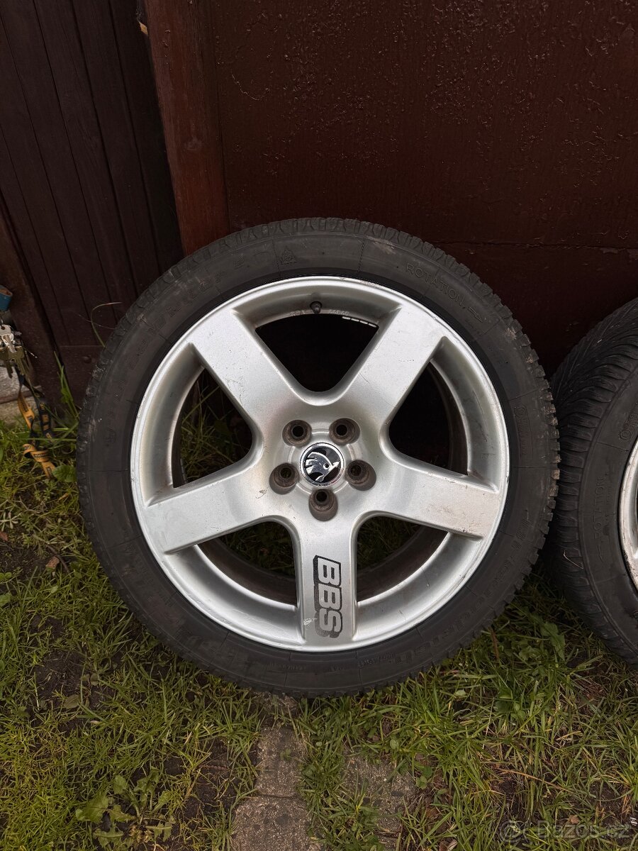 Prodám originál alu VW, GT Sport, o rozměrech 5x100 7J et38. Pneu zimní starší 4mm 225/45 r17. Cena 4500,-