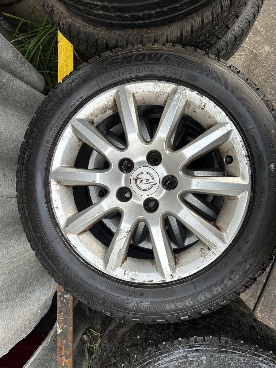 Prodám skoro nové zimní pneumatiky 205/55/16 s ALU disky Opel origo cena za kus alu + pneu 1250,- Kč X 4 ks