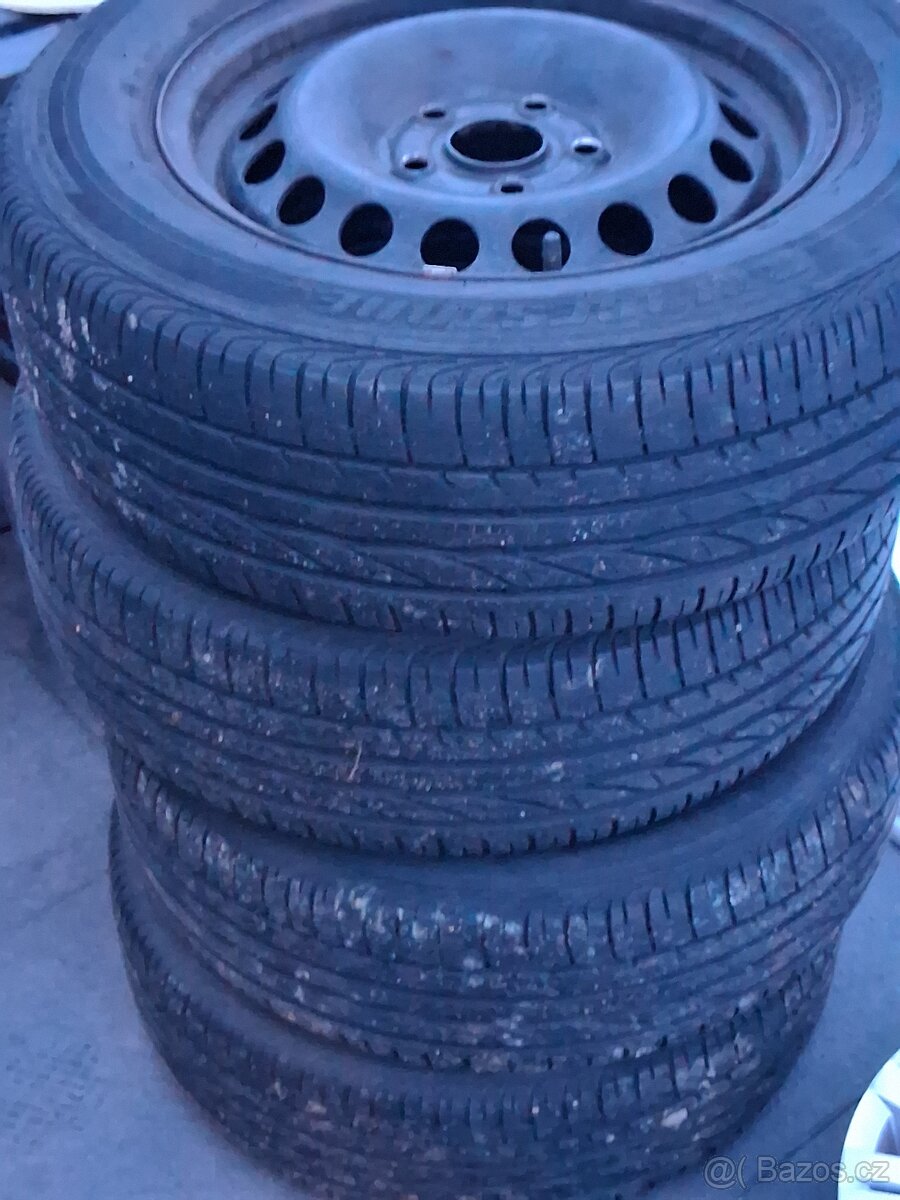 Prodám letní sadu 195/65r15 5×112 pasují na vše koncernové vozy. Sada tak max na dvě sezóny. Plus origo poklice cena 3000,bez poklic 2000.