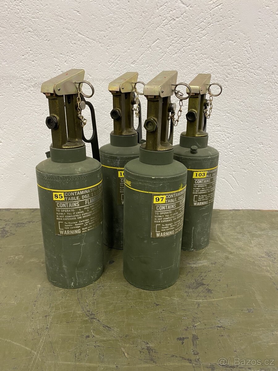 U.S. ARMY dekontaminátory. Dekontaminátory jsou prázdné, tzn. bez náplně. Jsou hezké a nepomlácené. Vhodné pro vozy Ford MUTT, Chevrolet Blazer M1009, HMMWV. Značené jsou rokem 1984/1985.