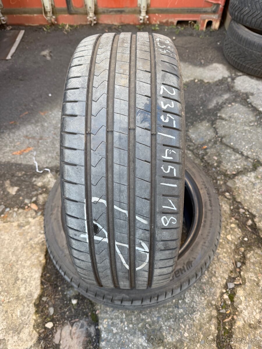 Prodám dva kusy letních pneumatik 235/45/18 98W Hankook Ventus Prime 4 K135. Hloubka vzorku 6mm, staří pneu Dot 2022, cena za kus 900,- kč. Prodám jen v páru.