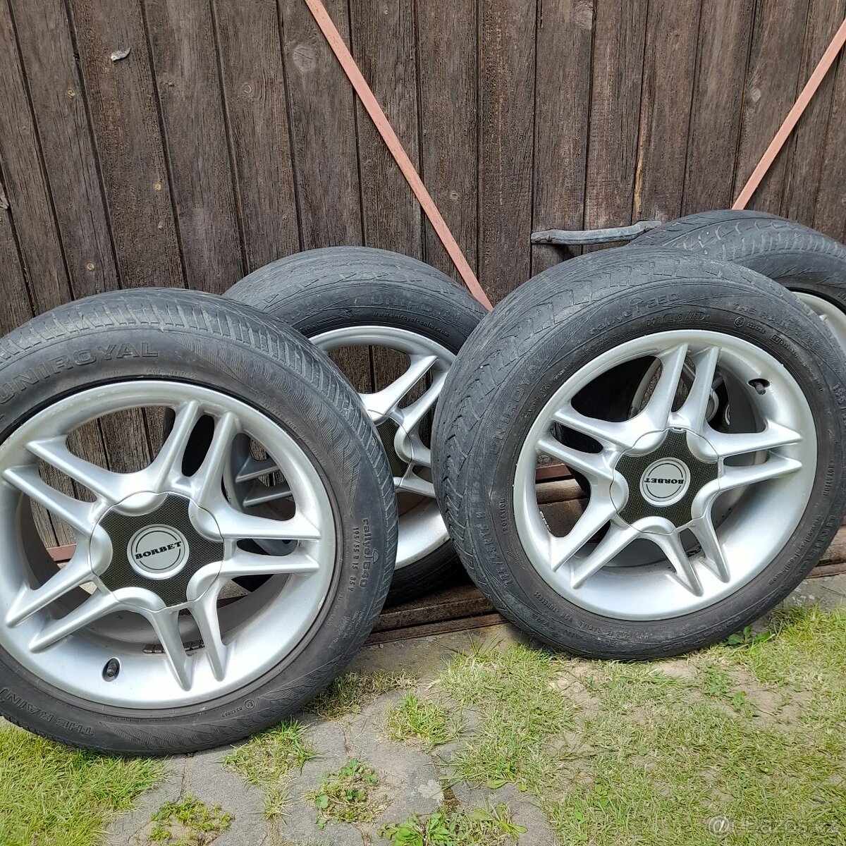 Prodám alu disky FORD Borbet, rozteč 4x108, 7Jx15H2, Et 35, středová díra 50,3 mm. Letní pneu UNIROYAL 195/55 R 15 (k dojetí).Dohoda možná.